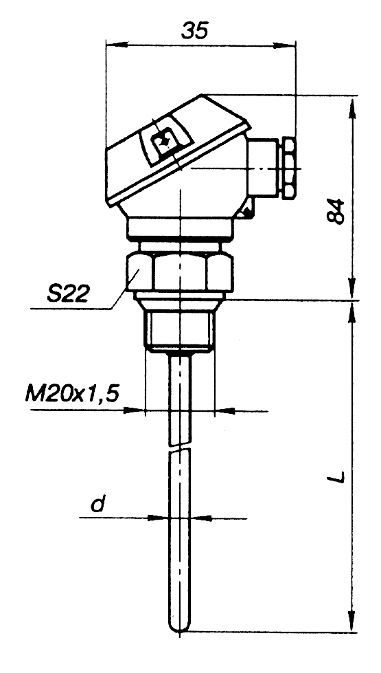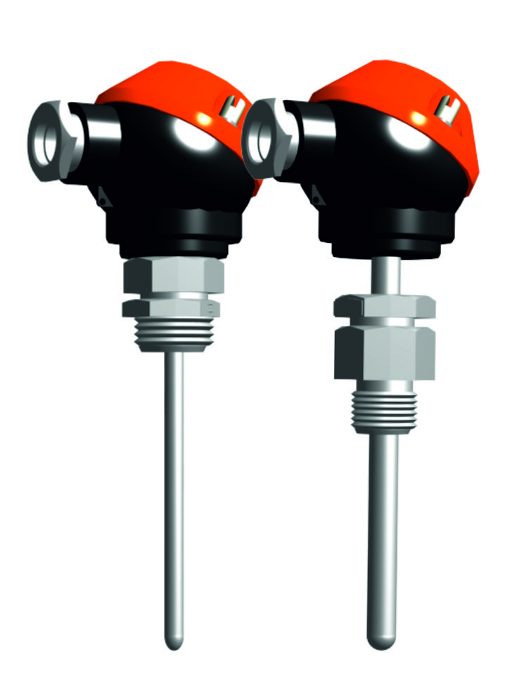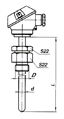 Малогабаритные датчики. Защитная арматура — прямая труба 12Х18Н10Т с приварным штуцером М20х1,5; Ø6 мм; материал клеммной головки — алюминиевый сплав.
