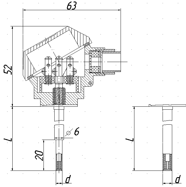 Без головки, с кабельным выводом (провод МГТФ 0,12) длиной 2500 мм. Наружная оболочка кабеля из фторопластовой трубки Ф-4Д 3x0,4. Защитная арматура — из стали 12Х18Н10Т, Ø5 мм, со штуцером передвижным, герметичным из стали 12Х18Н10Т. Один чувствительный элемент. Дополнительная защита кабеля фторопластовой термоусаживающейся трубкой от перегибов в месте соединения кабеля с защитной арматурой.