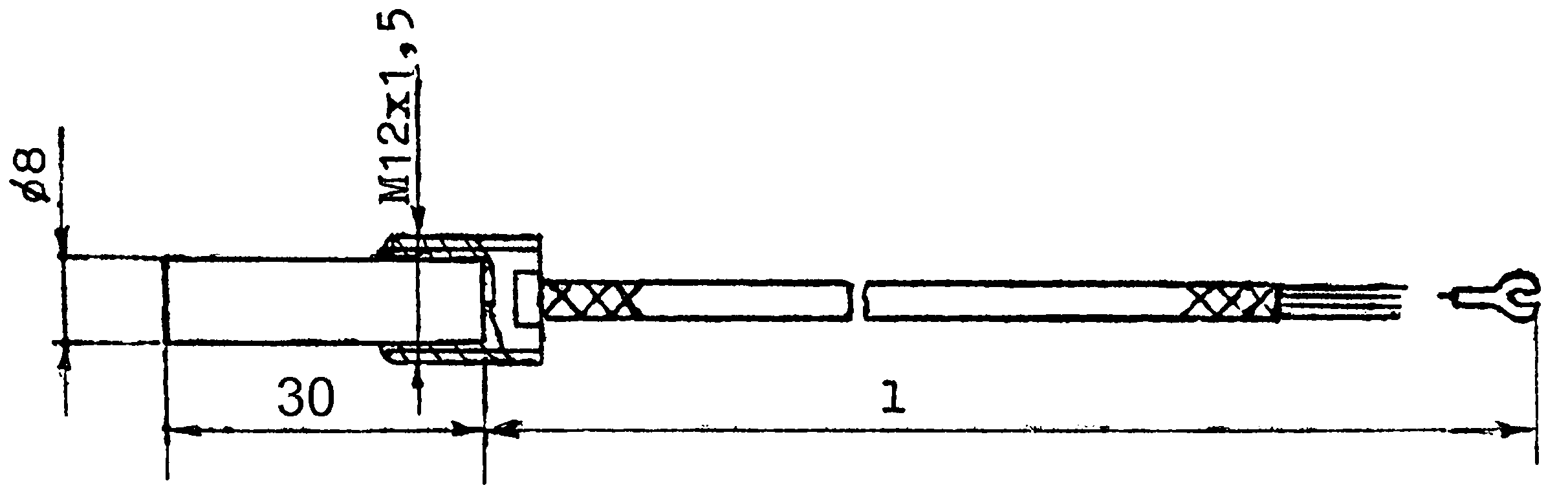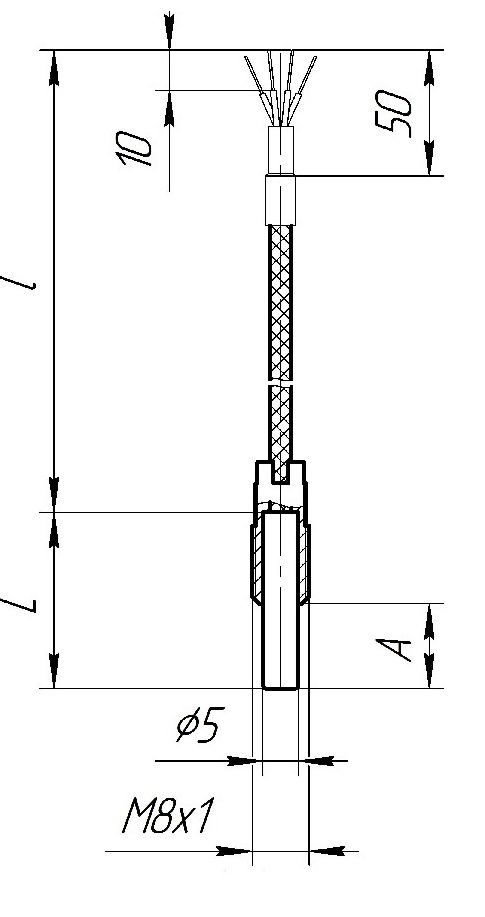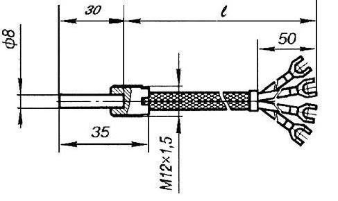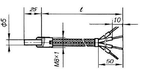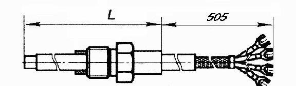Малоинерционные термосопротивления. Защитная арматура — Ø10 с утонением до 9 мм длиной 10мм, со штуцером подвижным М20х1,5; без клеммной головки, с кабельным выводом; длина по заказу. Штуцер с пружиной для обеспечения надёжного контакта с измеряемой поверхностью.