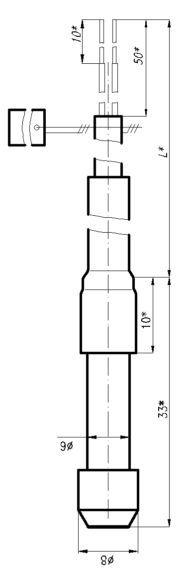 Без головки, с кабельным выводом (провод МГТФ 0,12) длиной 2500 мм. Наружная оболочка кабеля из кремнийорганической трубки 203 ТКР 2,5. Защитная арматура — из стали 12Х18Н10Т, Ø6 мм со штуцером передвижным, герметичным из стали 12Х18Н10Т. Один чувствительный элемент. Дополнительная защита кабеля фторопластовой термоусаживающейся трубкой от перегибов в месте соединения кабеля с защитной арматурой.