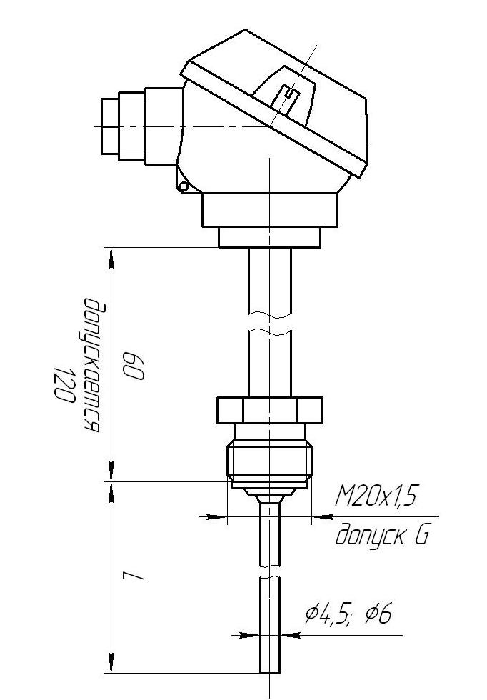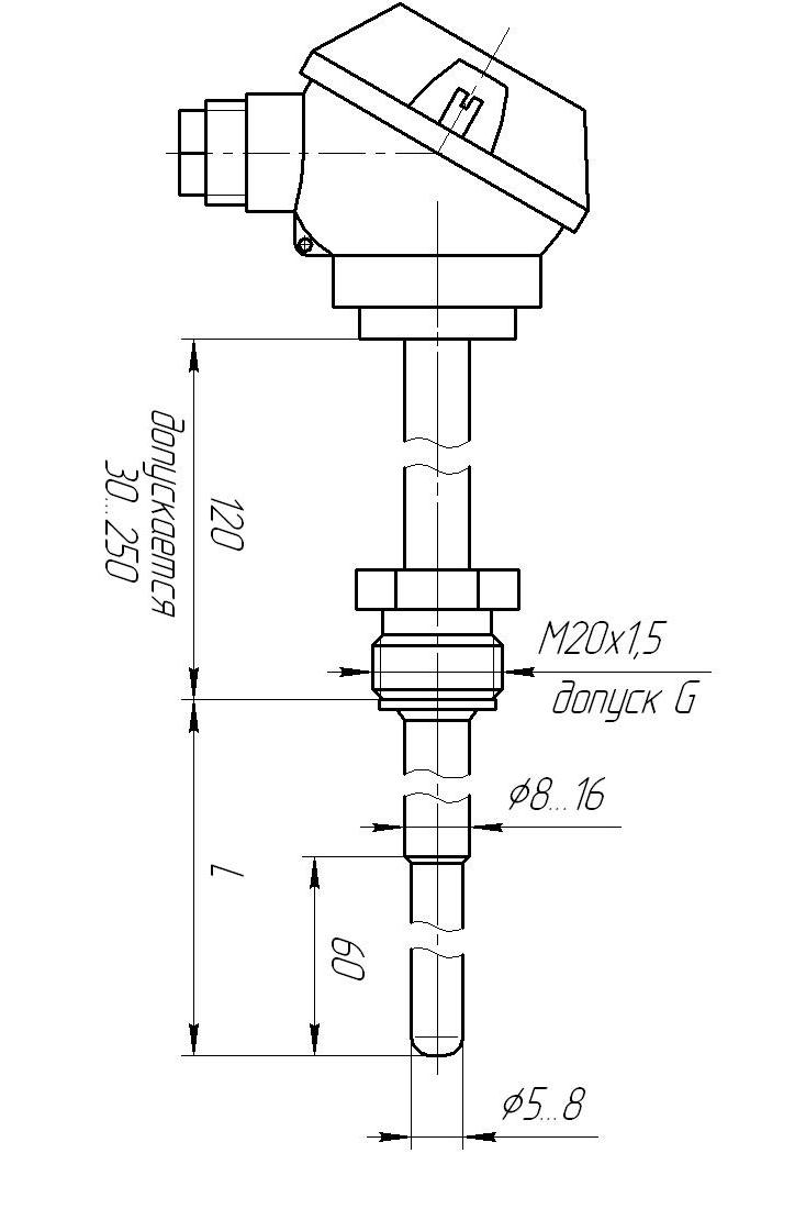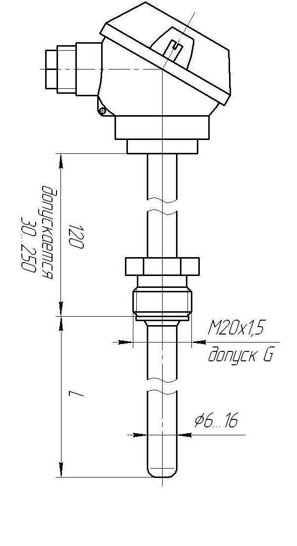 - Длина монтажной части может быть любой в пределах значений, указанных в таблице Б.1. Для исполнений ТСП/ТСМ-04-02, ТСП/ТСМ-04-03, ТСП/ТСМ-05-01 дополнительно в скобках указывается длина удлинительного провода L1 в мм (например, ТСП-04-02, 120(5000) мм).