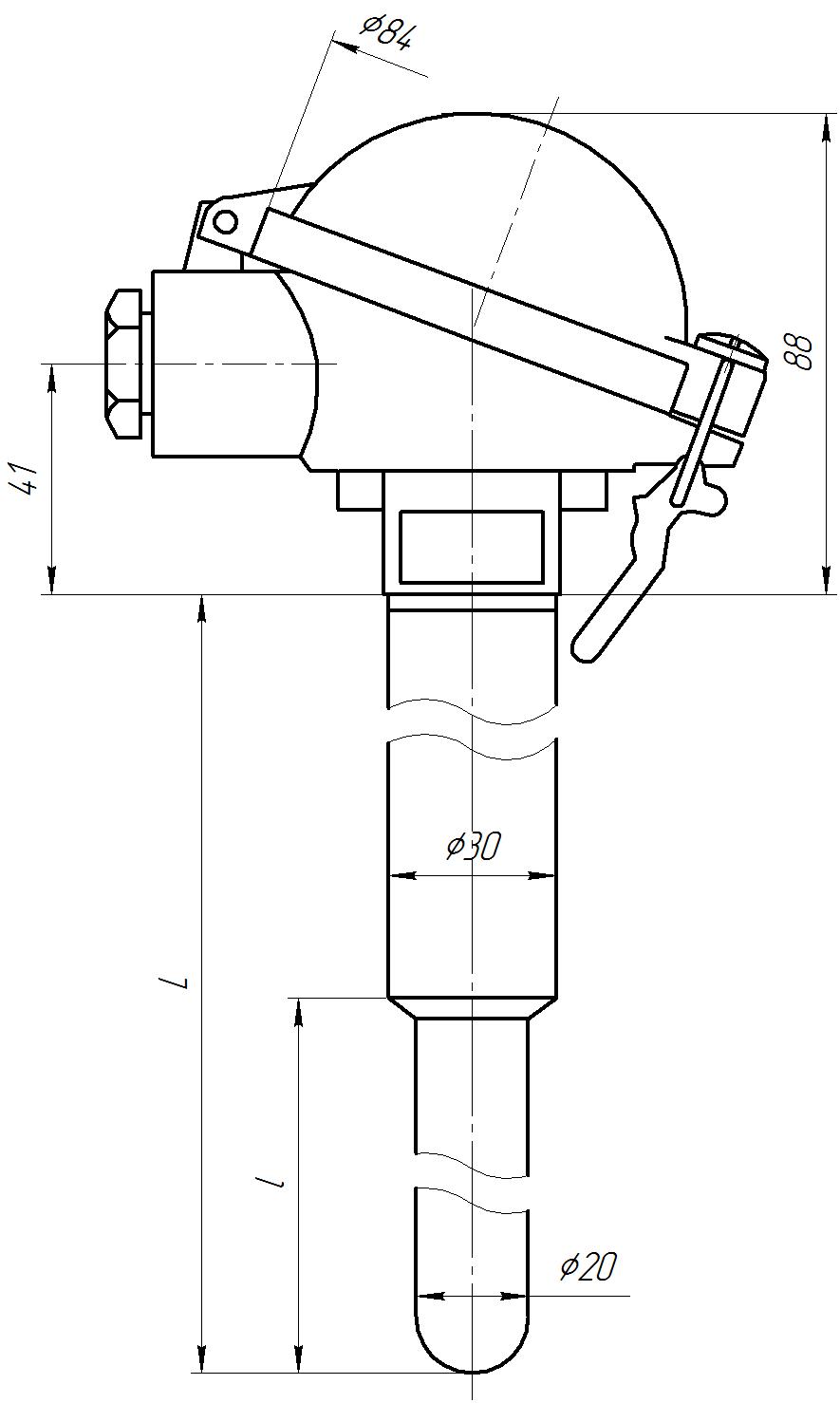 Защитная арматура — без штуцера, материал — сталь 15Х25Т или сталь ХН45Ю, Ø30 мм, погружаемая часть — керамика, Ø20 мм, материал головки — алюминиевый сплав. Конструкция разборная с транспортным чехлом. Негерметичны к измеряемой среде. Термоэлектроды Ø3,2 мм. Один чувствительный элемент. |