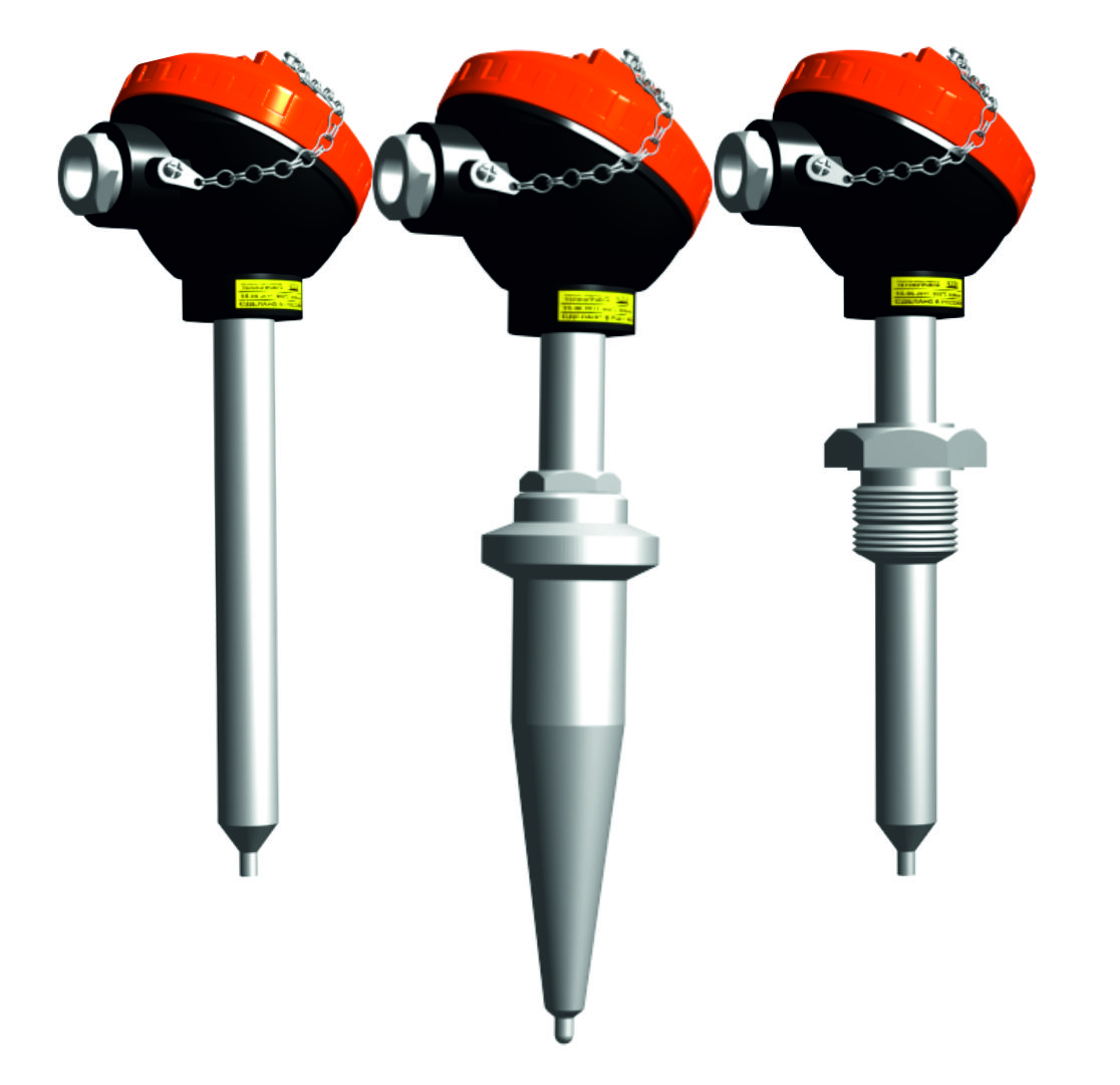 Защитная арматура — без штуцера, с конусообразным наконечником Ø35 мм, материал — сталь 12Х1МФ с утонением до 7 мм, материал головки — алюминиевый сплав. В качестве чувствительного элемента применен импортный термопарный кабель 1-го класса. Рабочий спай изолирован. Условное давление измеряемой среды Ру = 25,5 МПа. Один чувствительный элемент. |