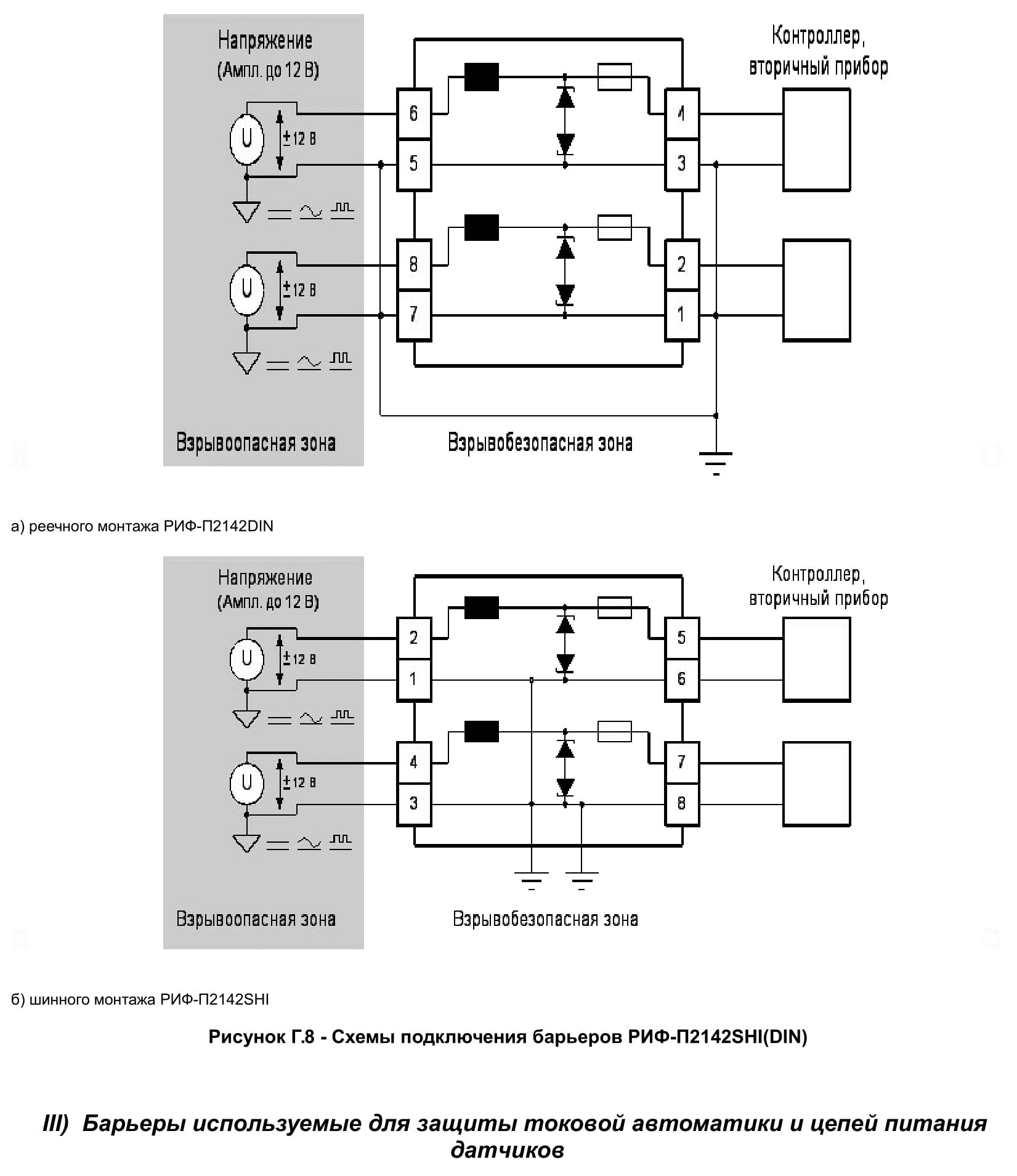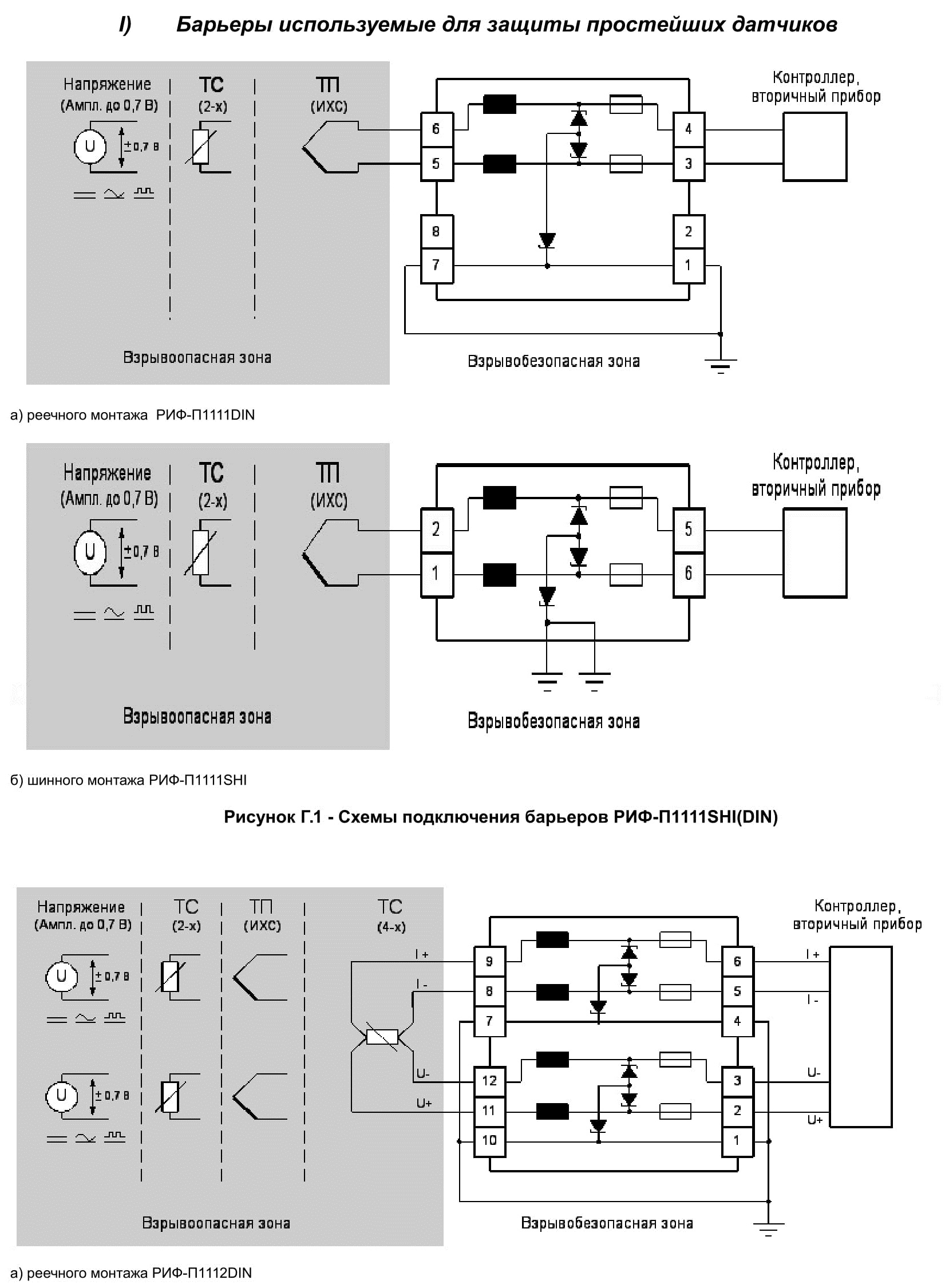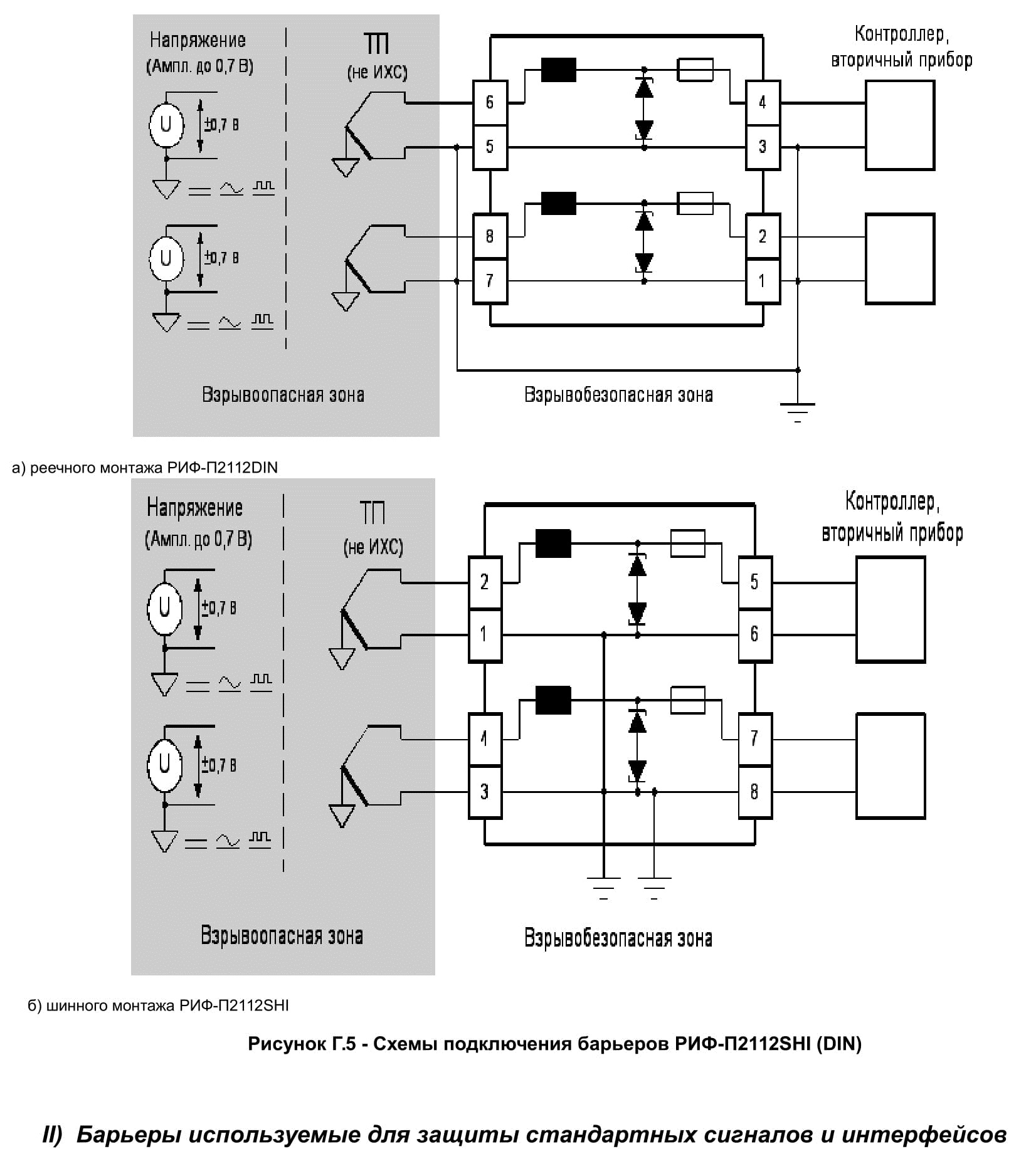 Пассивные барьеры имеют гальваническую связь между входом и выходом и относятся к классу шунтдиодных барьеров с обязательным искрозащитным заземлением.