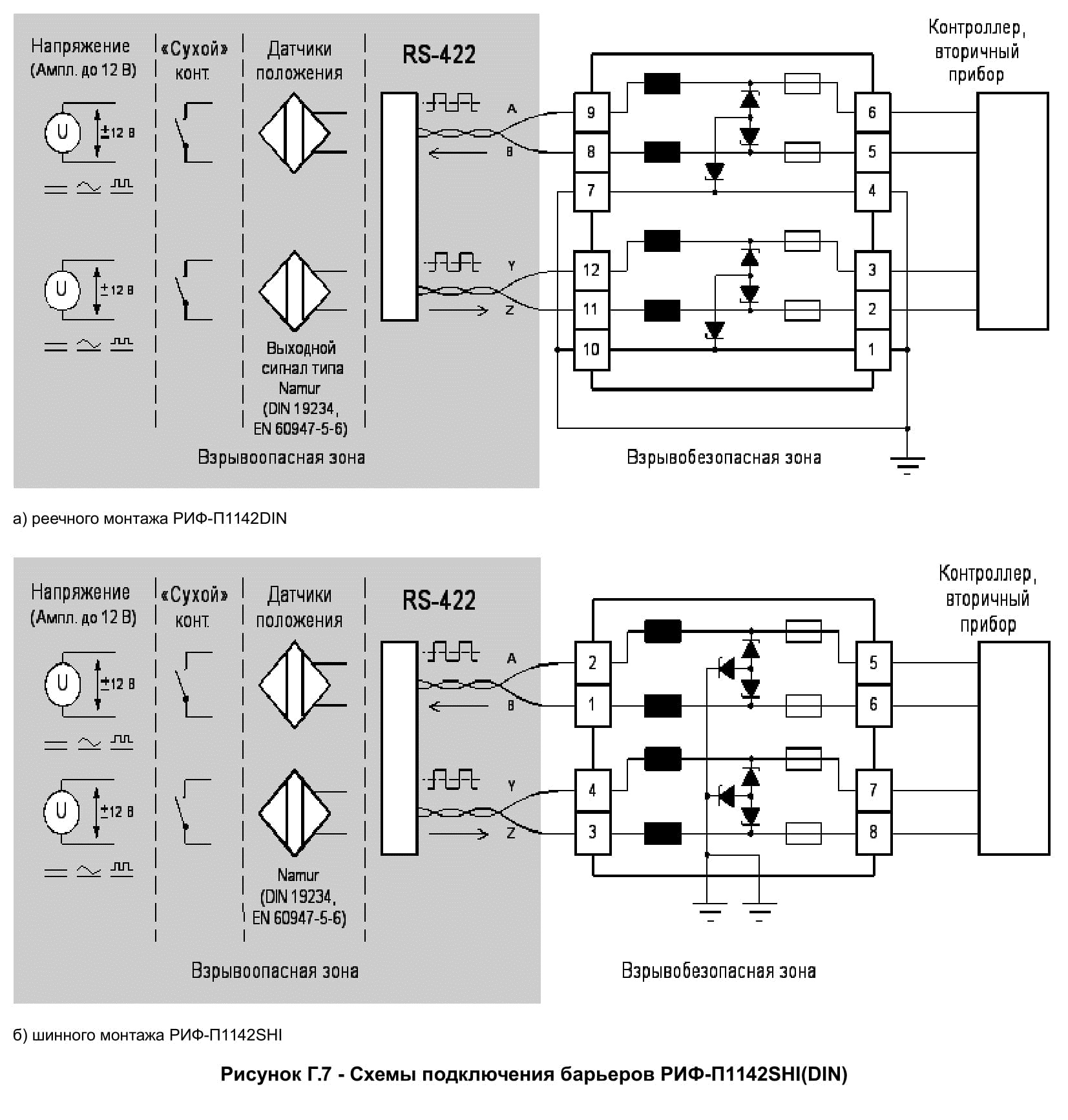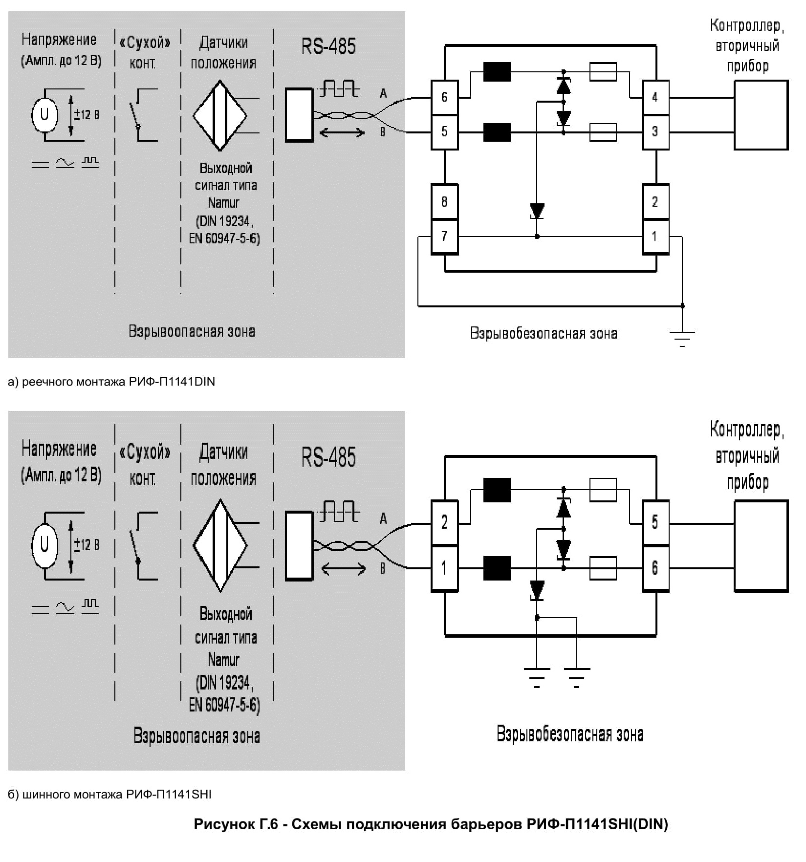 Барьеры являются связанным электрооборудованием по ГОСТ Р МЭК 60079-11 и предназначены для установки за пределами взрывоопасных зон помещений и наружных установок.