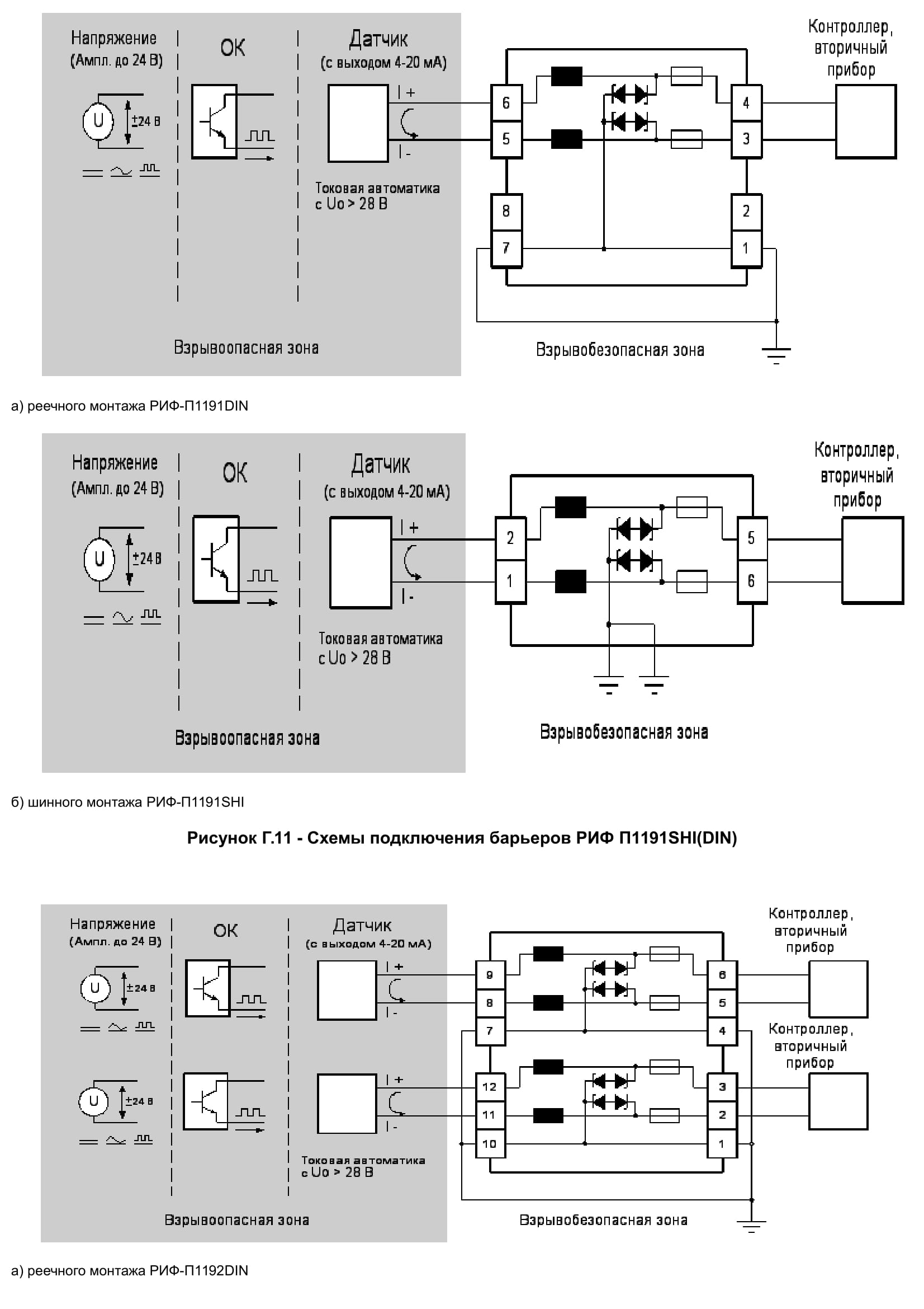 Барьеры выполнены в соответствии с требованиями предъявляемыми ГОСТ Р МЭК 60079-11 к взрывозащищенному электрооборудованию подгрупп IIС, IIB и IIA, имеют маркировку по взрывозащите
