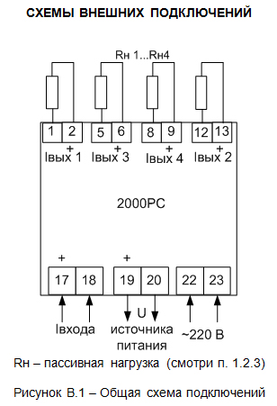 2000РС Преобразование входного сигнала 0-5 или 4-20 мА в два или четыре унифицированных электрических сигнала постоянного тока.