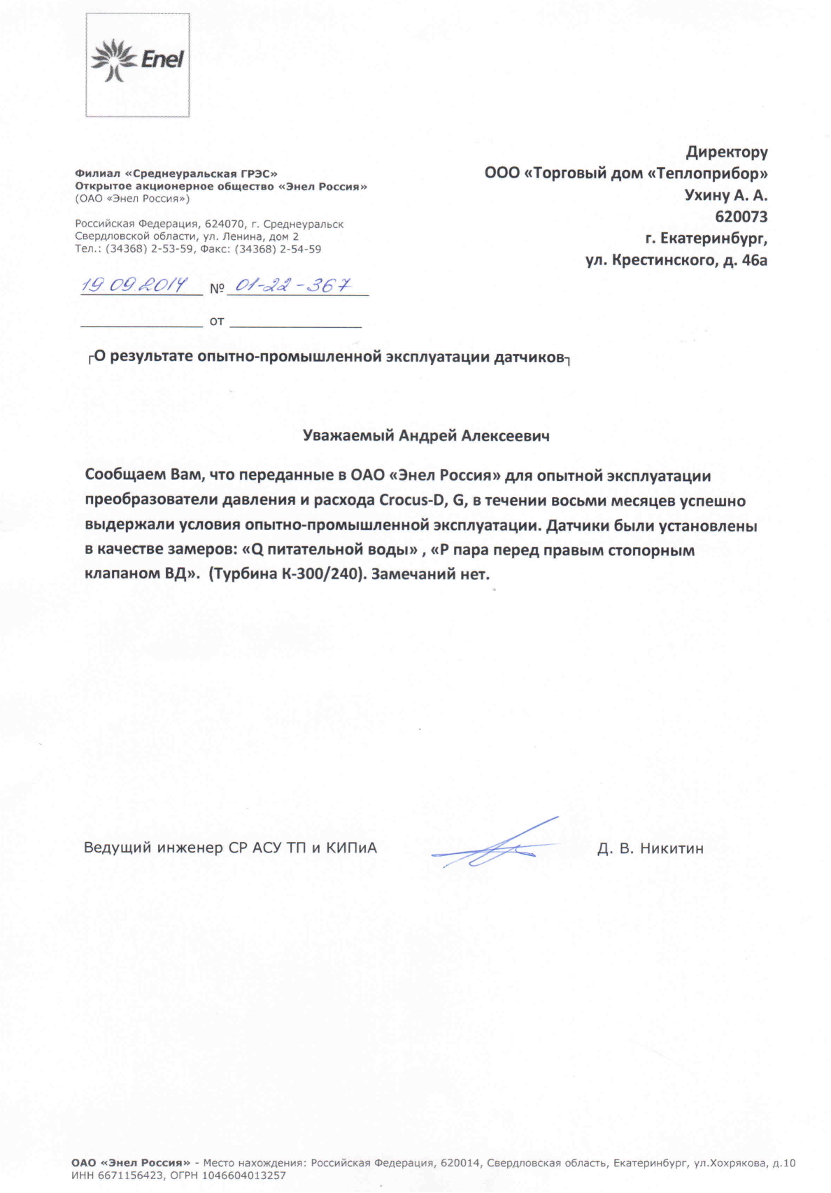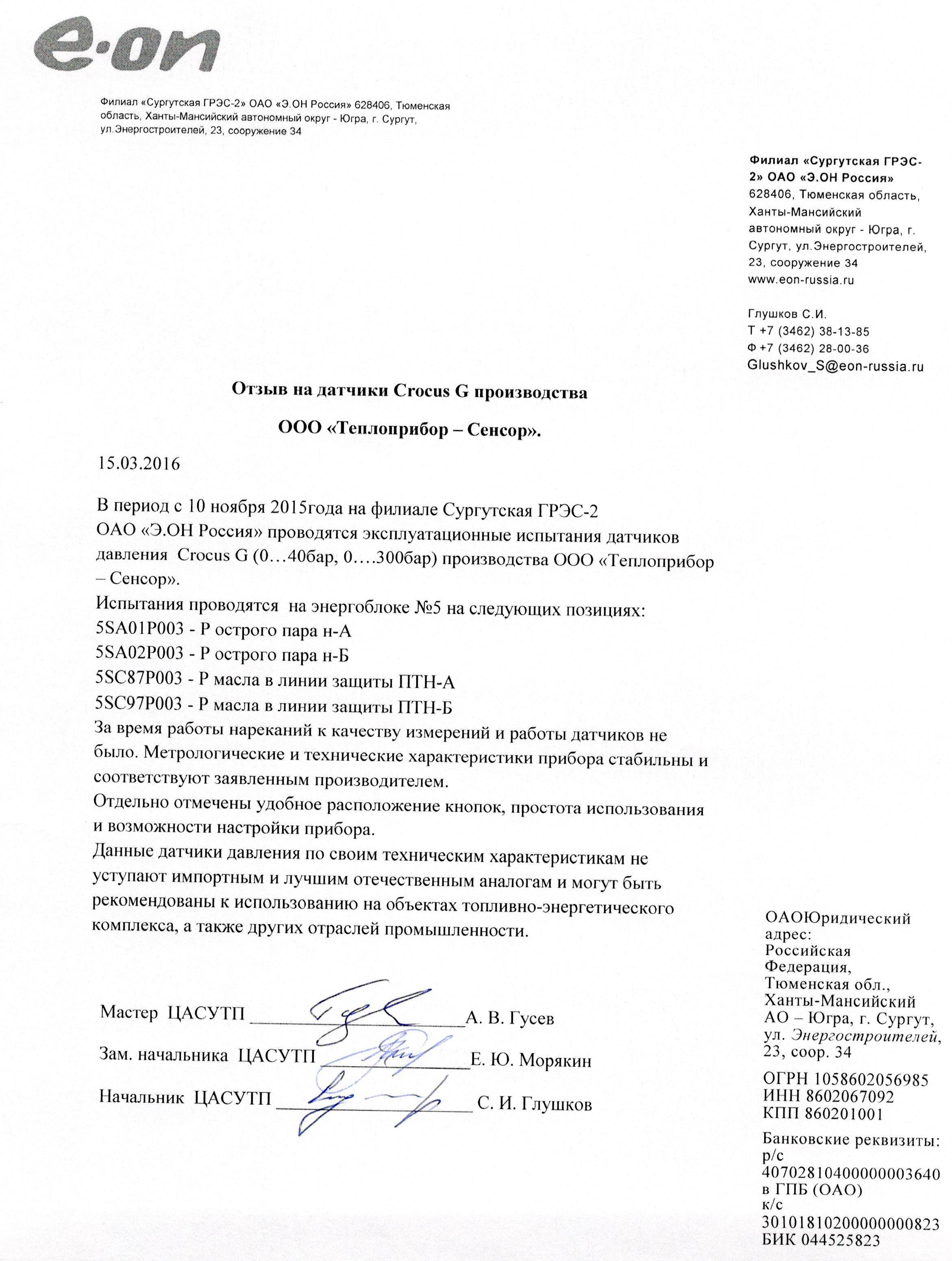 | 49 | Датчик давления CROCUS | 2016 | Филиал "Сургутская ГРЭС-2" ОАО "Э. ОН Россия" |