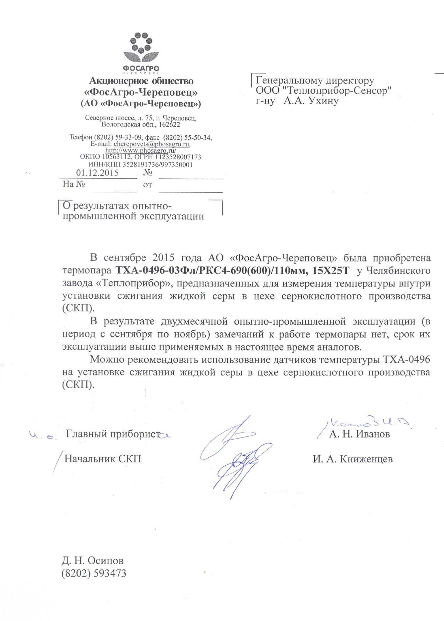 | 38 | Термопары: ТХК, ТР-01, ТХА-0496 | 2014 | ОАО ФосАгро |
