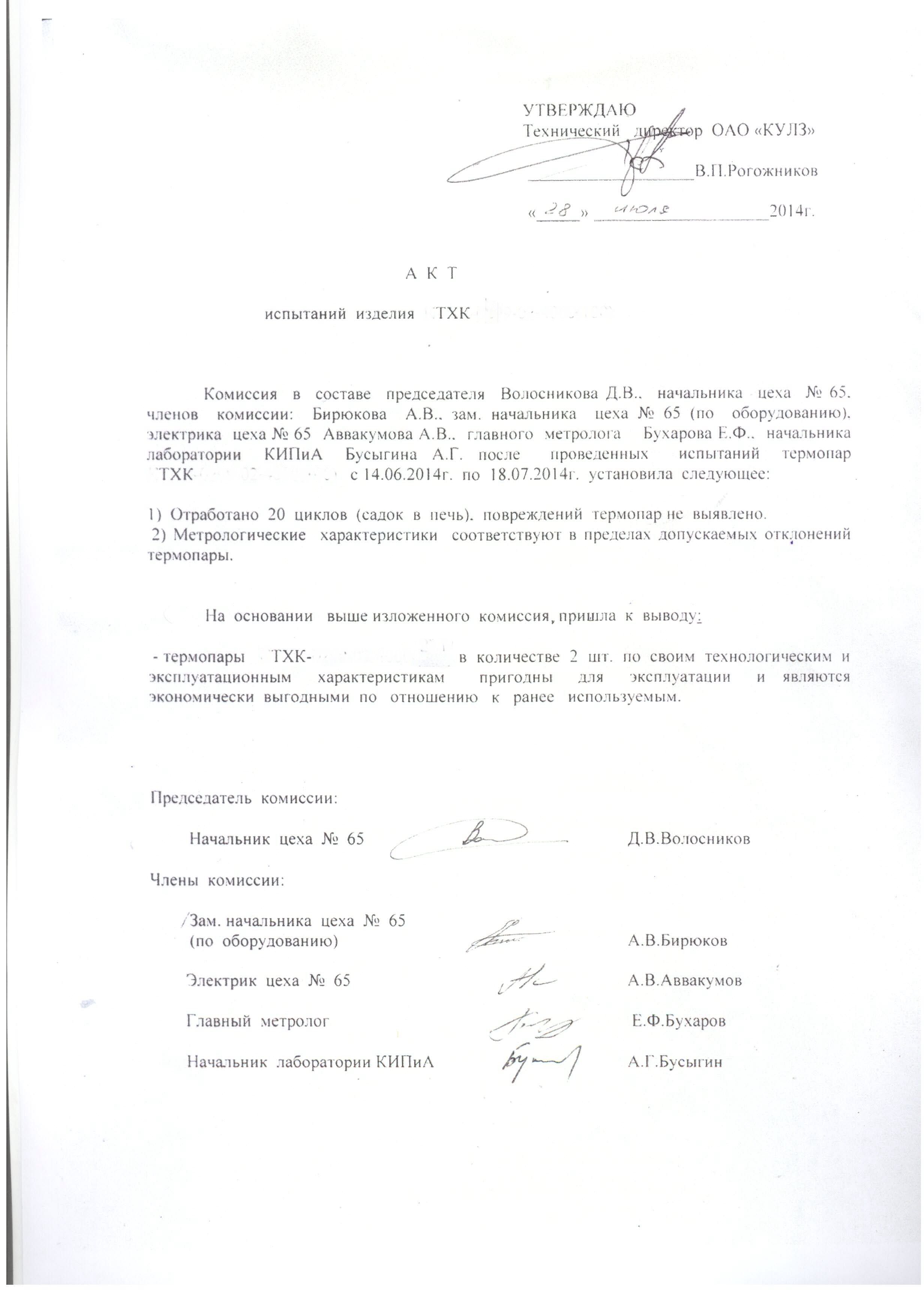 | 37 | Термопары: ТХК, ТР-01, ТХА-0496 | 2014 | ОАО "КУЛЗ" |