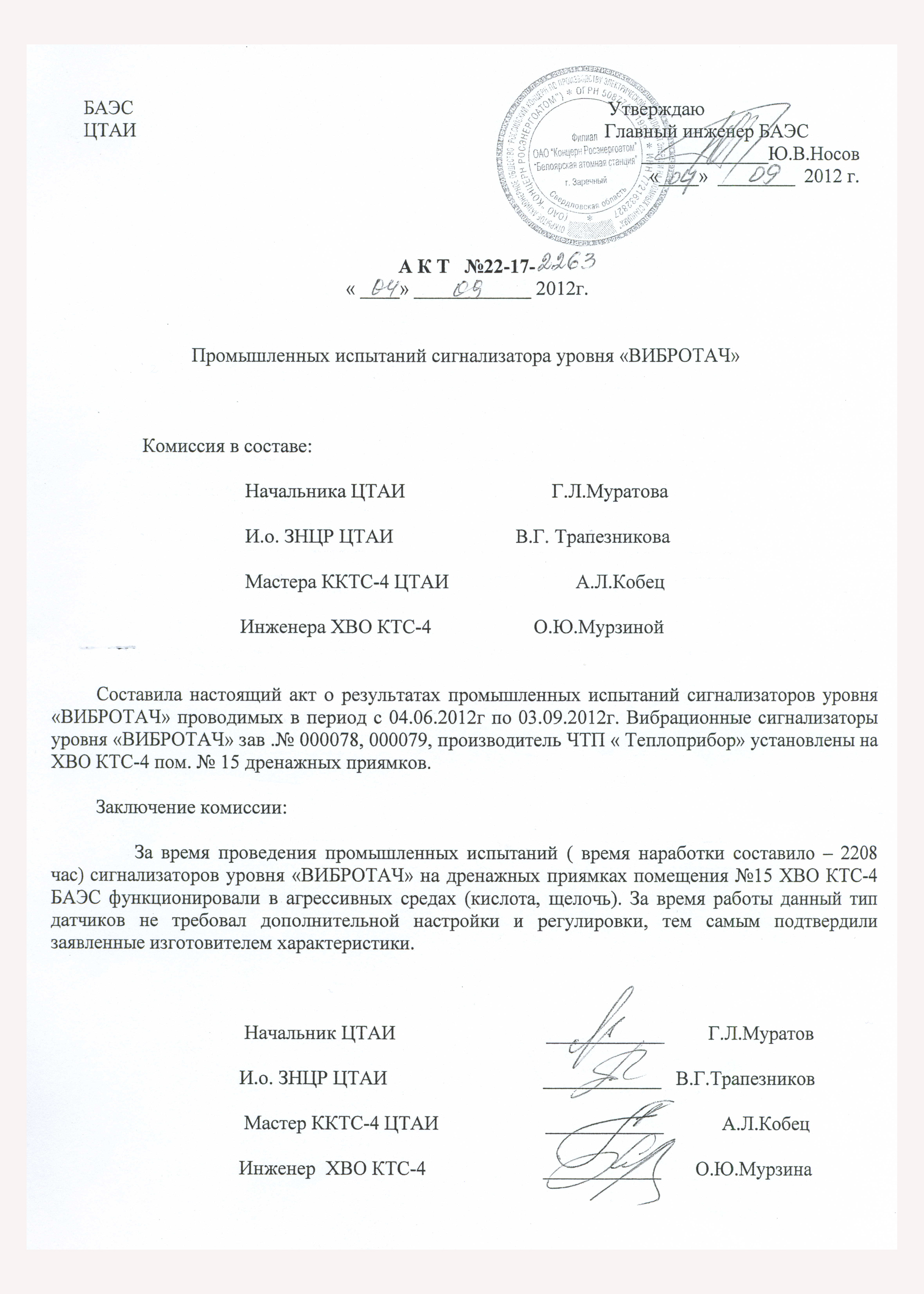 | 16 | Вибрационный сигнализатор уровня Вибротач | 2012 | Филиал ОАО "Концерн Росэнергоатом" "Белоярская атомная станция" |