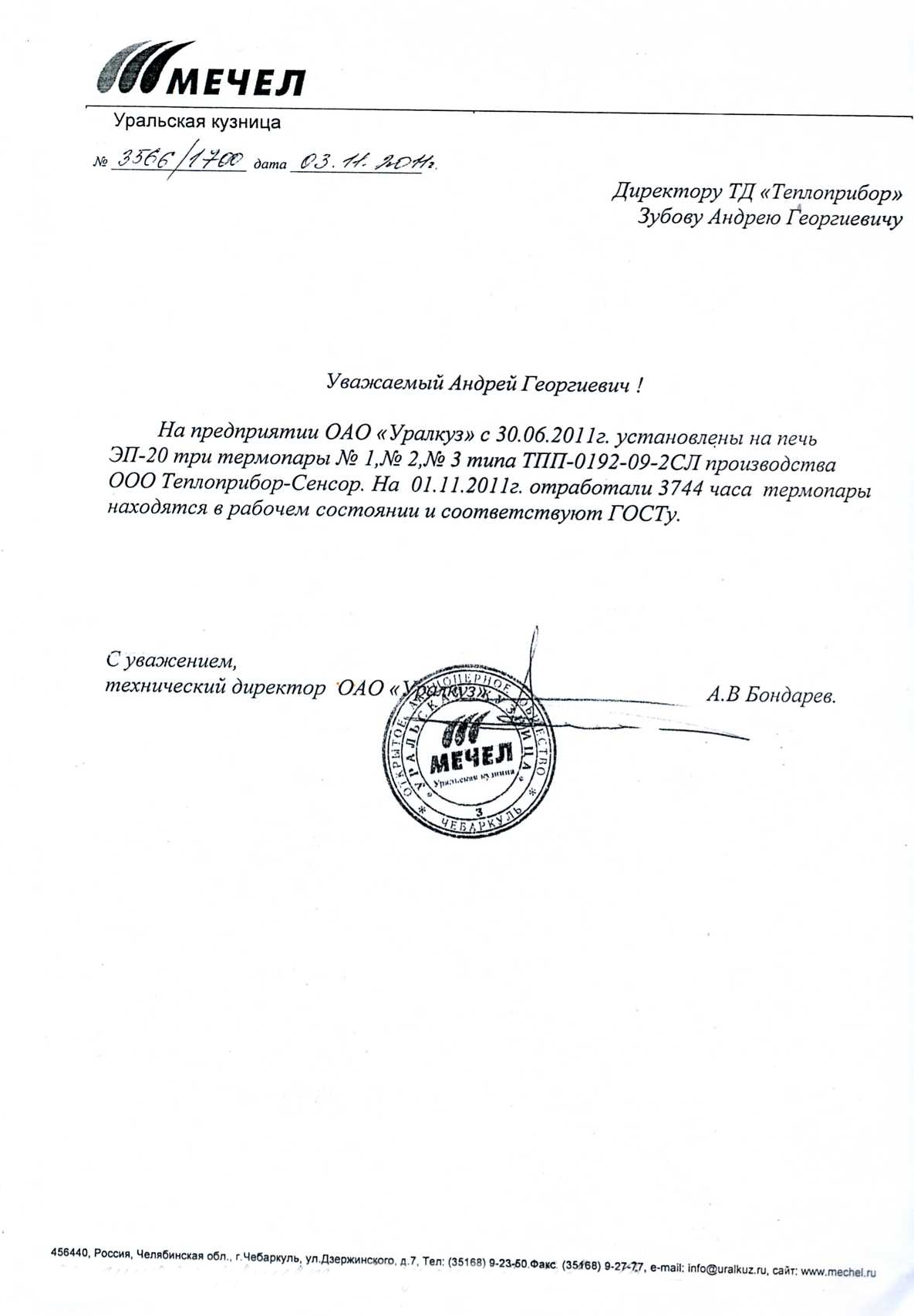 | 5 | Термопара ТПП-0192-09-2СЛ | 2011 | ОАО "Уралкуз" |
