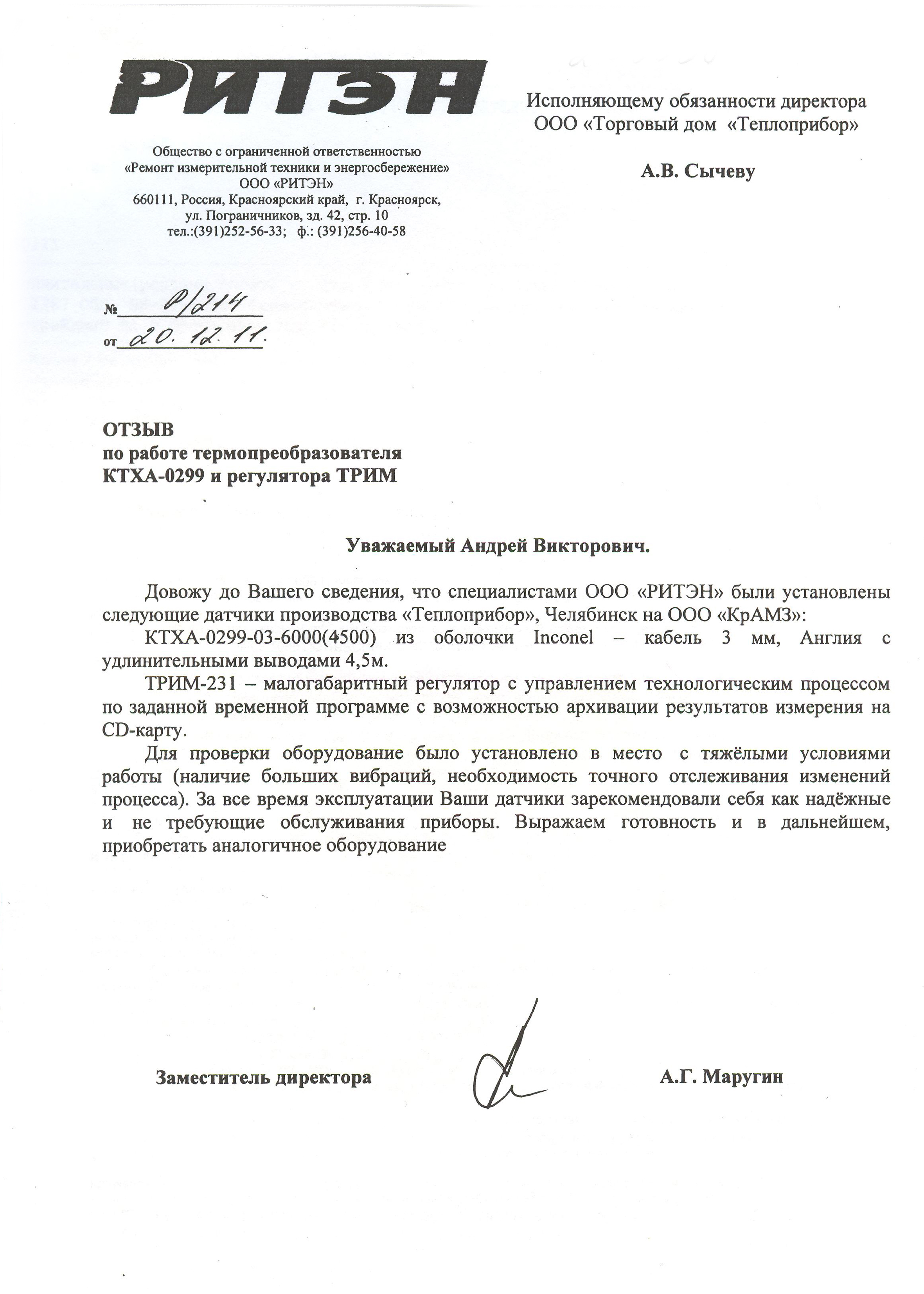| 9 | Кабельная термопара КТХА-0299, Регулятор ТРИМ | 2011 | ООО "КрАМЗ" |