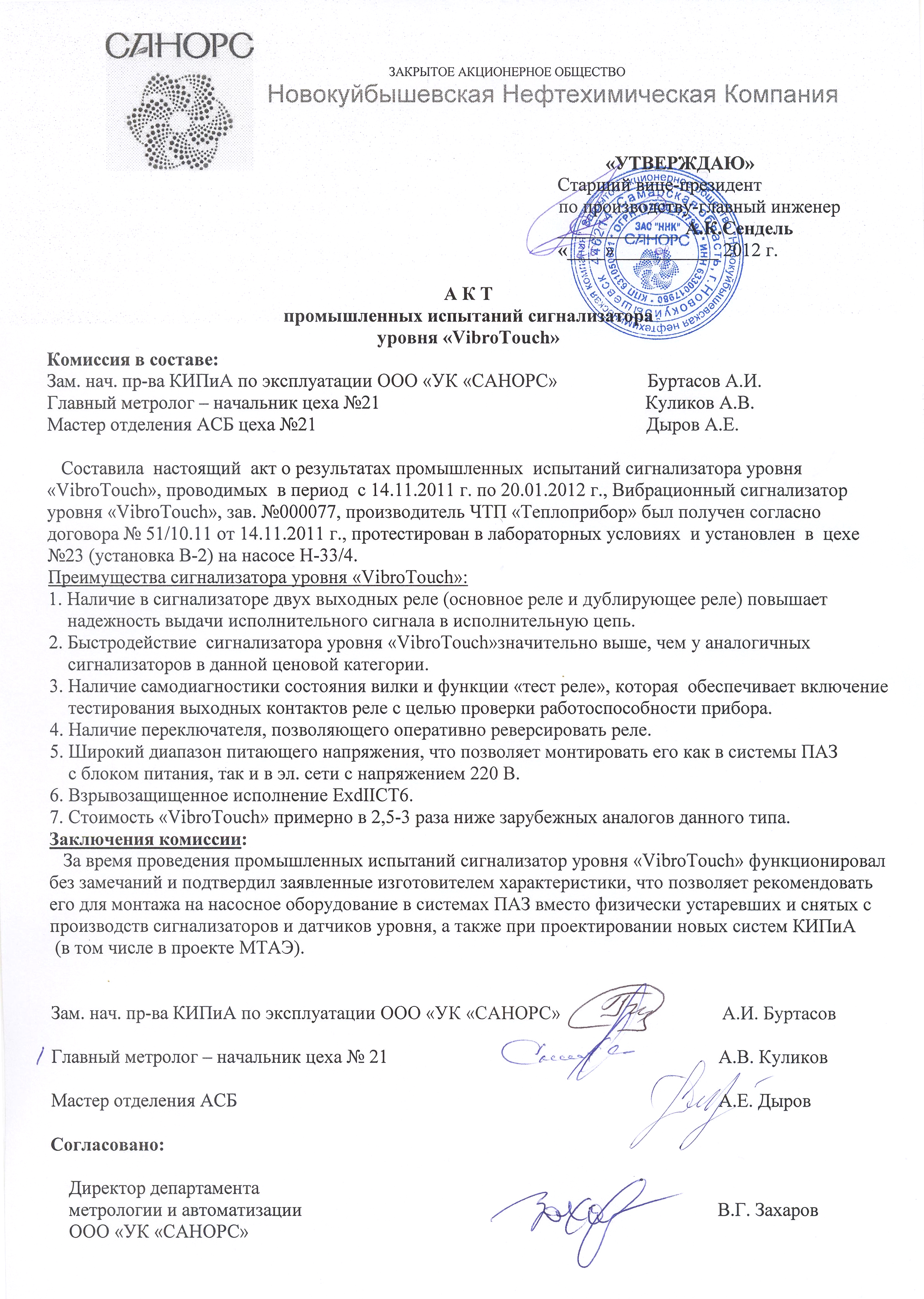 | 21 | Вибрационный сигнализатор уровня Вибротач | 2012 | ЗАО "Новокуйбышевская Нефтехимическая Компания" |