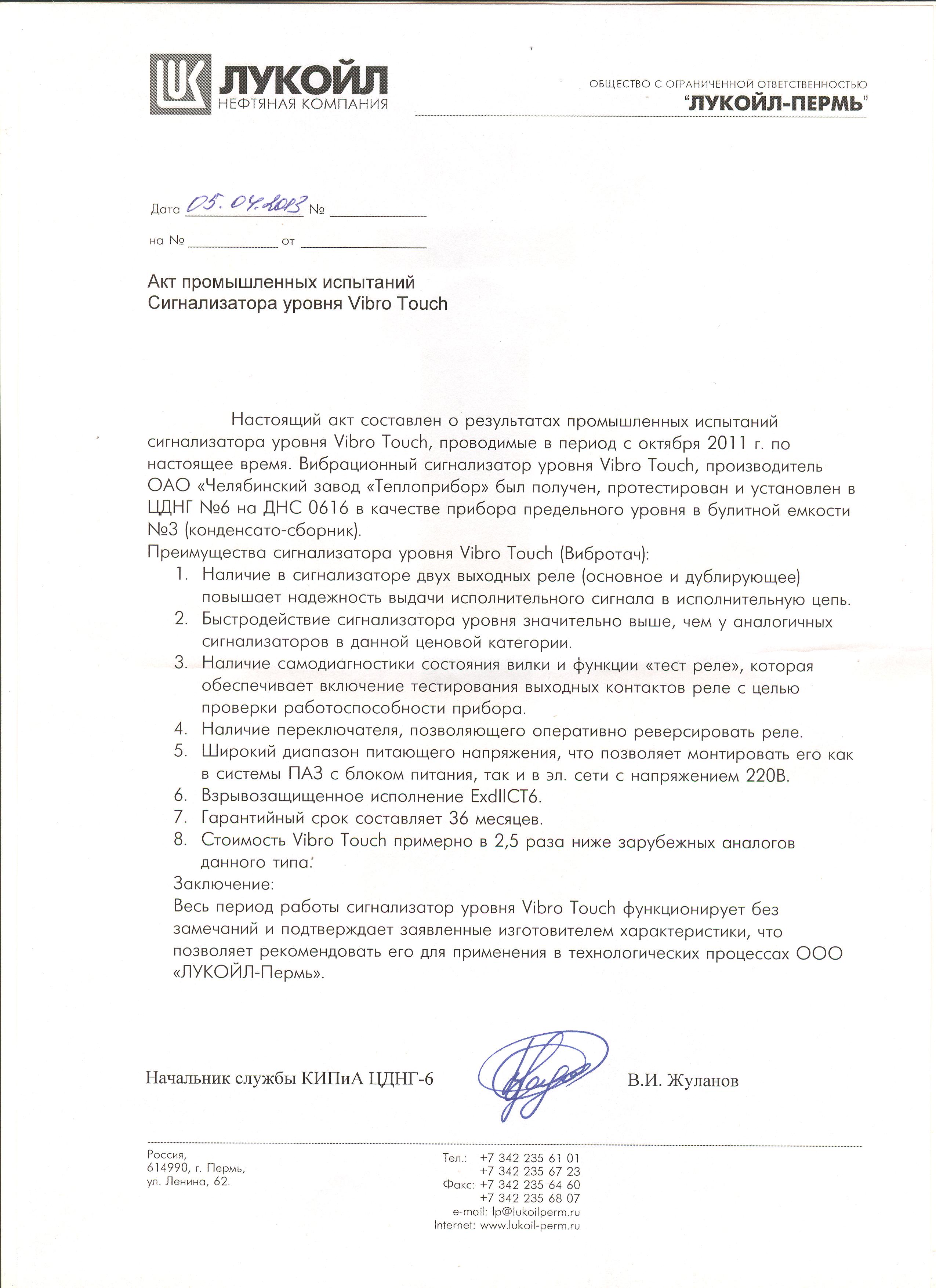 | 25 | Вибрационный сигнализатор уровня Вибротач | 2013 | OOO "ЛУКОИЛ-Пермь" |