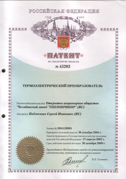 "Преобразователь термоэлектрический"(варианты)