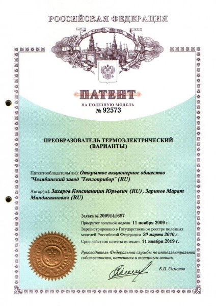 Патент на полезную модель № 92573