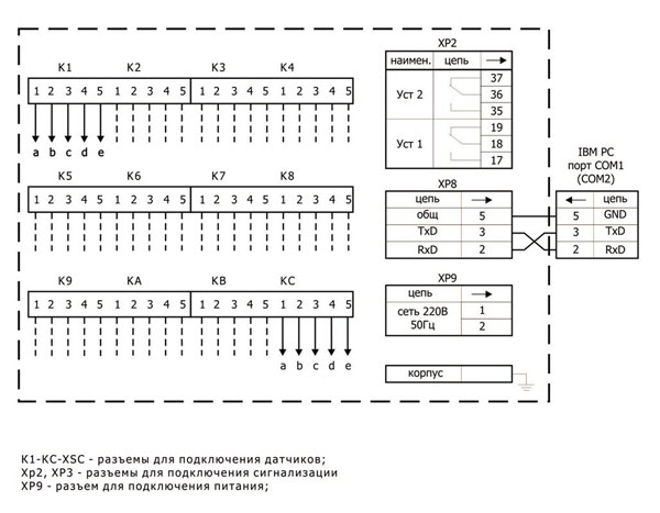 контактное — по 2 независимые уставки на каждый канал и 2 реле на все каналы или по 2 независимые уставки и по 2 реле на каждый канал (220 В /0,25 А переменного тока).