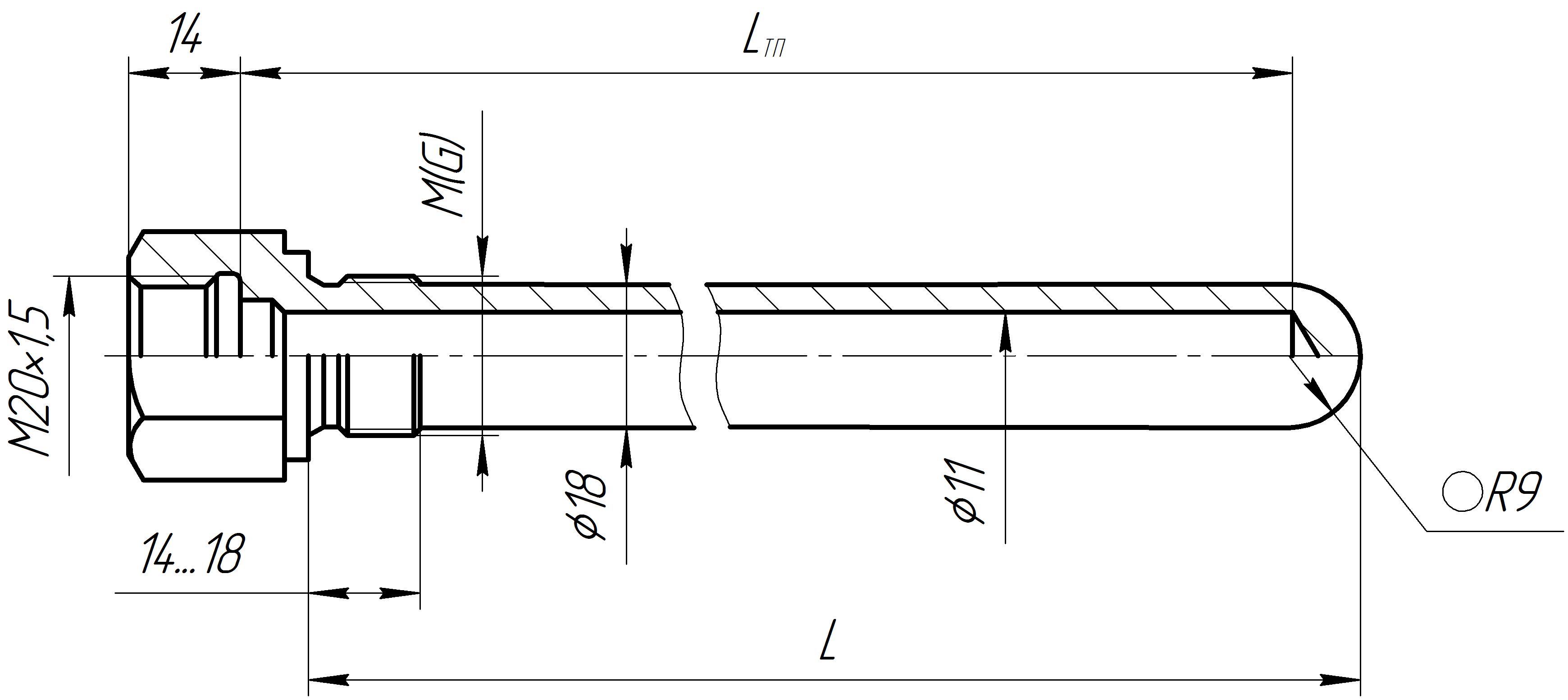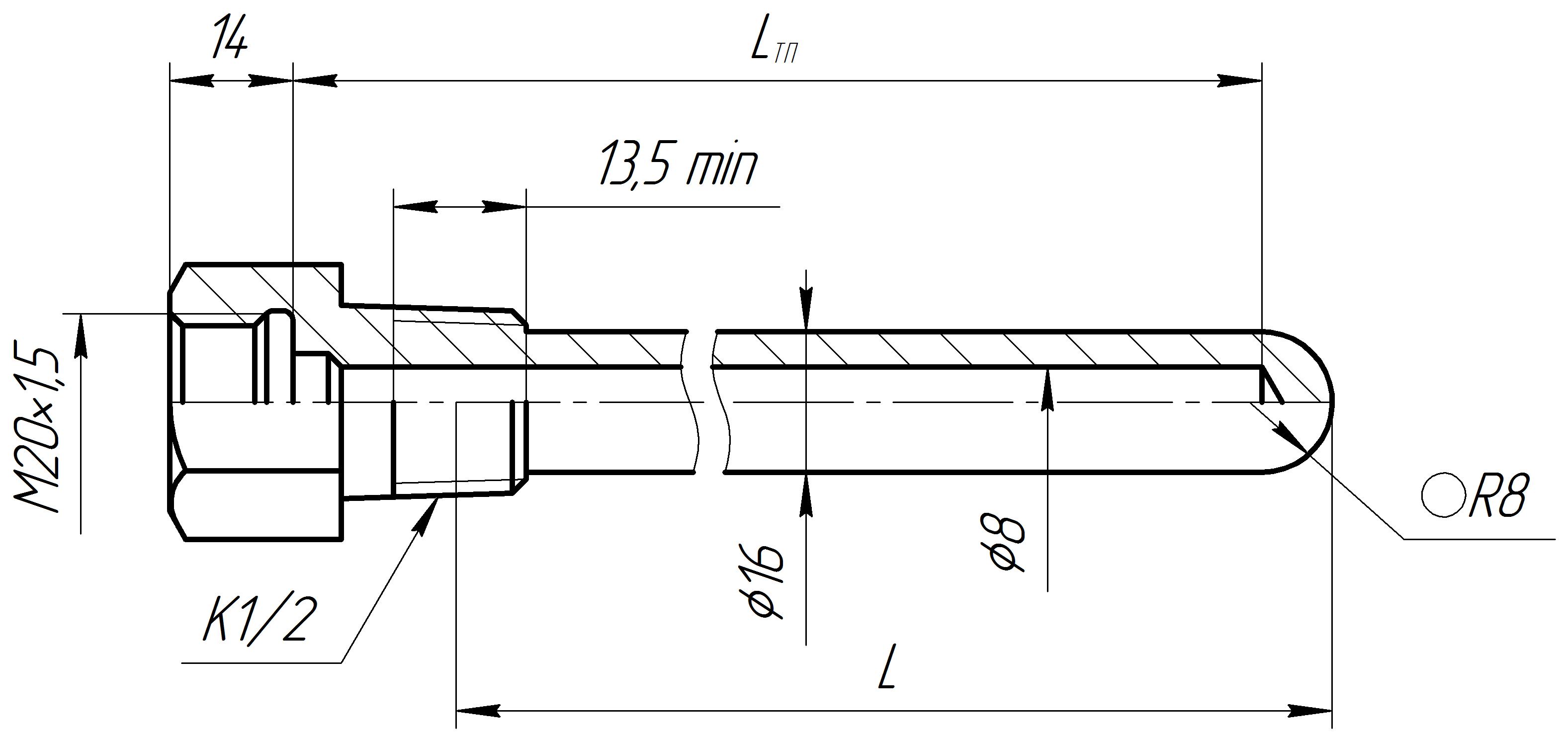 Гильзы защитные цельноточеные с резьбовой ввертной частью ГЗР-01, ГЗР-02 предназначены для защиты датчиков температуры от воздействияизмеряемой среды.